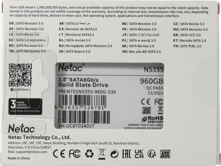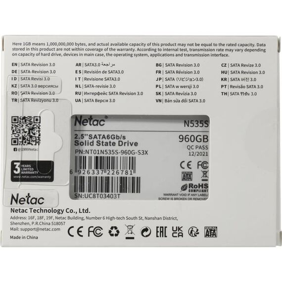 Наличие товара Netac 960 Gb N535S [NT01N535S-960G-S3X]