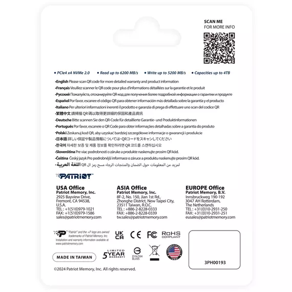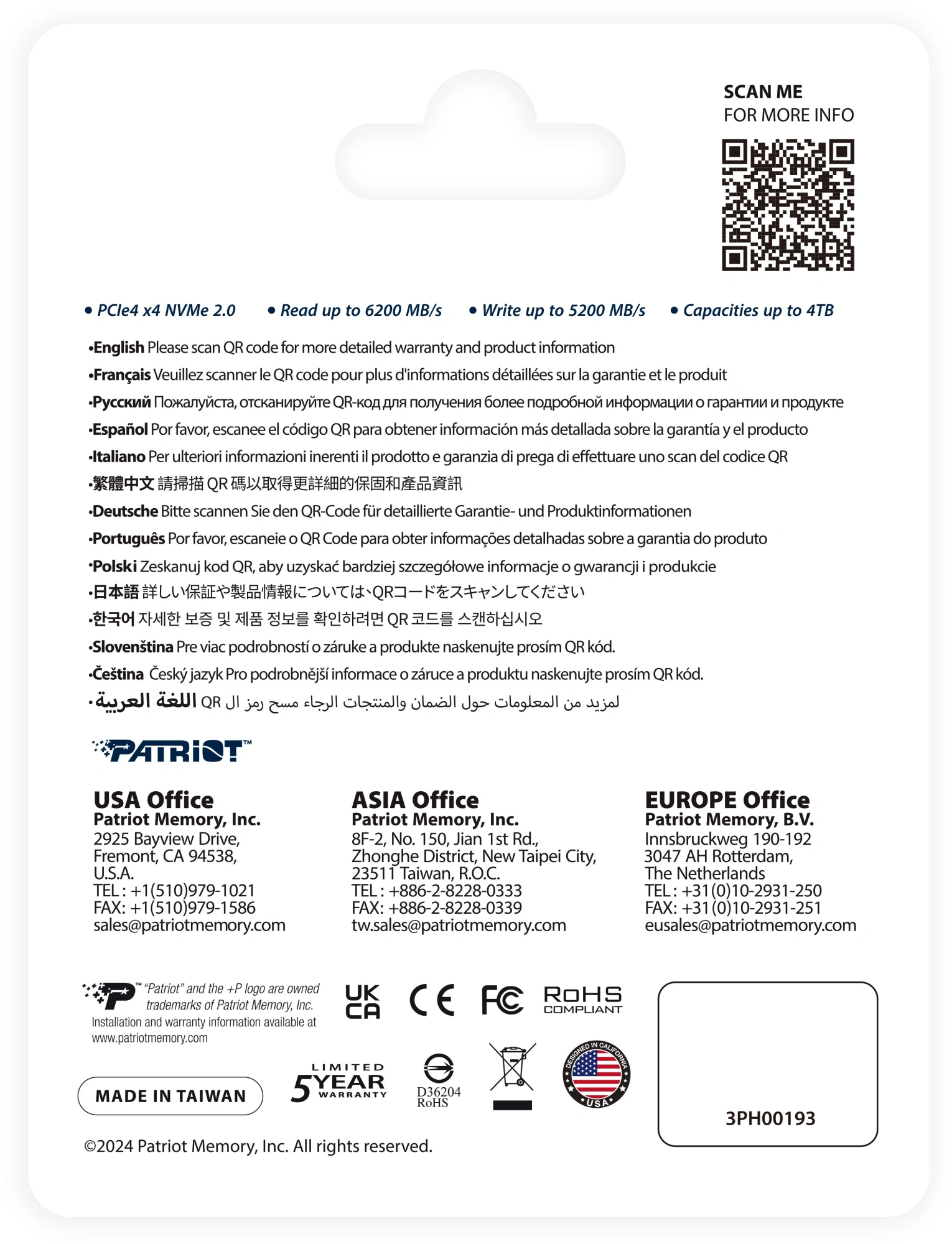 Накопитель SSD Patriot 2Tb P400 V4 PCIe 4.0 x4 M.2 2280 [P400VP2TBM28H]