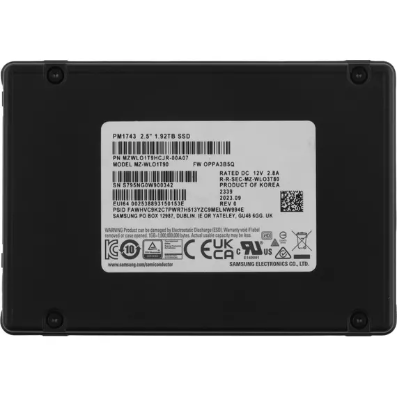 Накопитель SSD Samsung 1920GB PM1743 Enterprise 2.5 1 DWPD PCIe 5.0 x4 [MZWLO1T9HCJR-00A07]