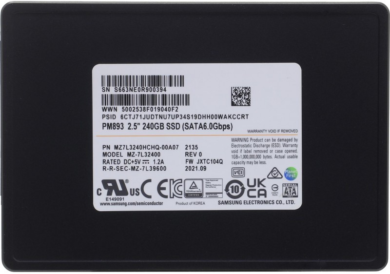 Описание Samsung 240 Gb PM893 [MZ7L3240HCHQ-00A07]