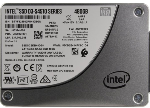 SSD-накопитель Intel 480 Gb D3-S4510 Series SATA 6Gb/s 2.5" 3D TLC [SSDSC2KB480G801]