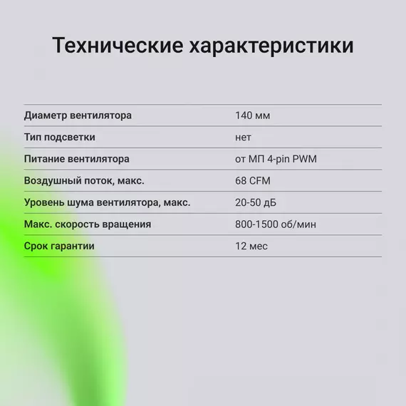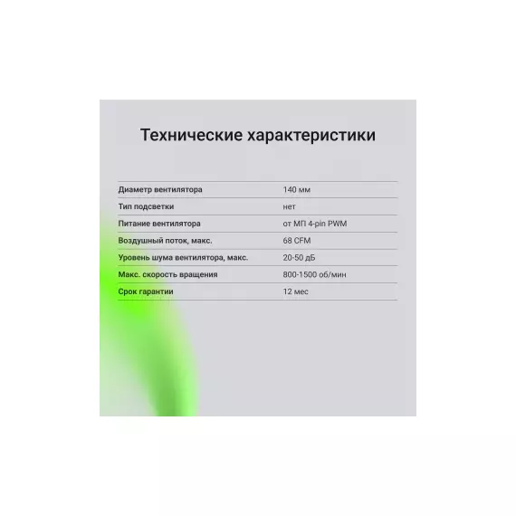 | Диаметр вентилятора | 140 мм |