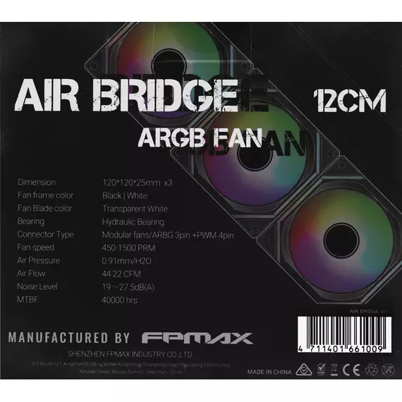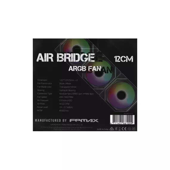 Вентилятор для корпуса Formula Air Bridge ARGB 120х120x25 4-pin 27.5дБ (упак.:3шт) RTL [AIR BRIDGE WH]