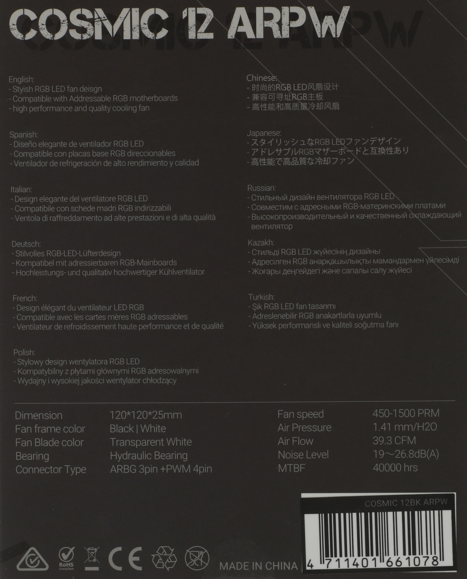 Вентилятор для корпуса Formula Cosmic 12BK ARGB 120х120x25 черный 4-pin 26.8дБ RTL [COSMIC 12BK ARPW]