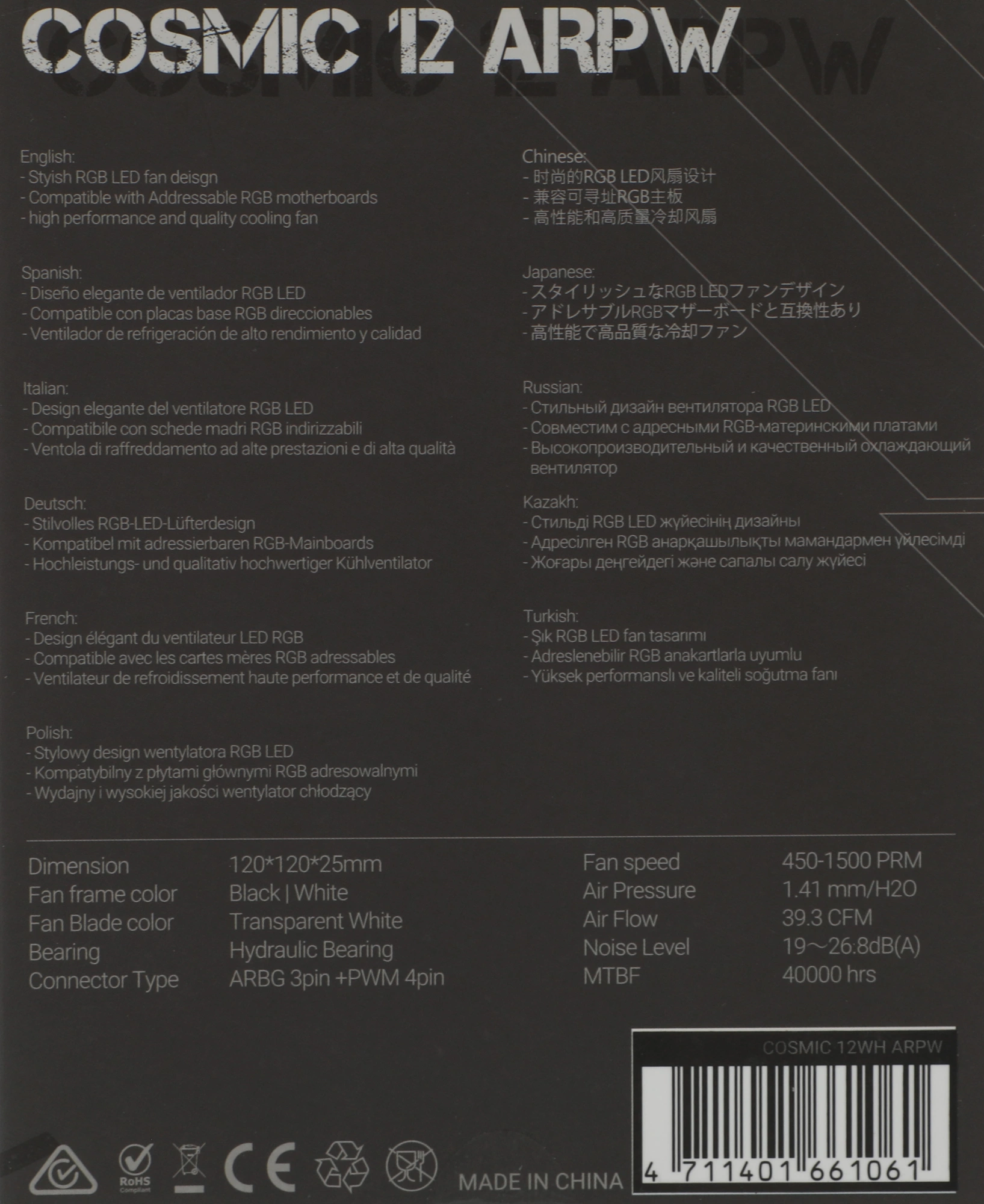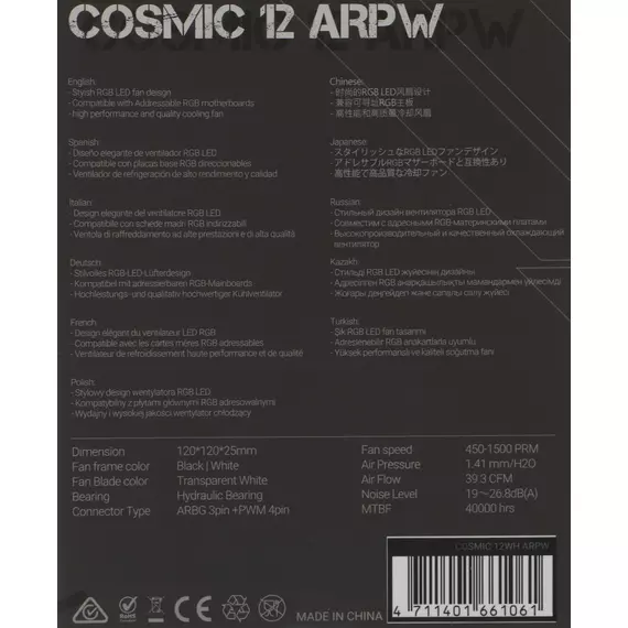Вентилятор для корпуса Formula COSMIC 12WH ARPW 120х120x25 белый 4-pin 26.8дБ RTL