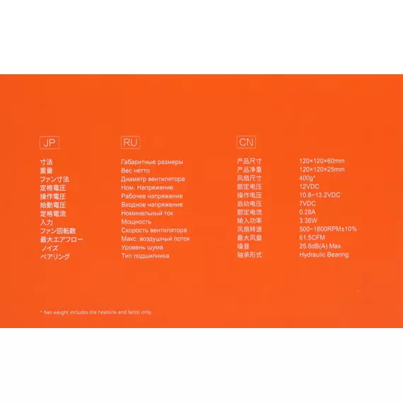 | Потребляемое напряжение вентилятора | 12 В |