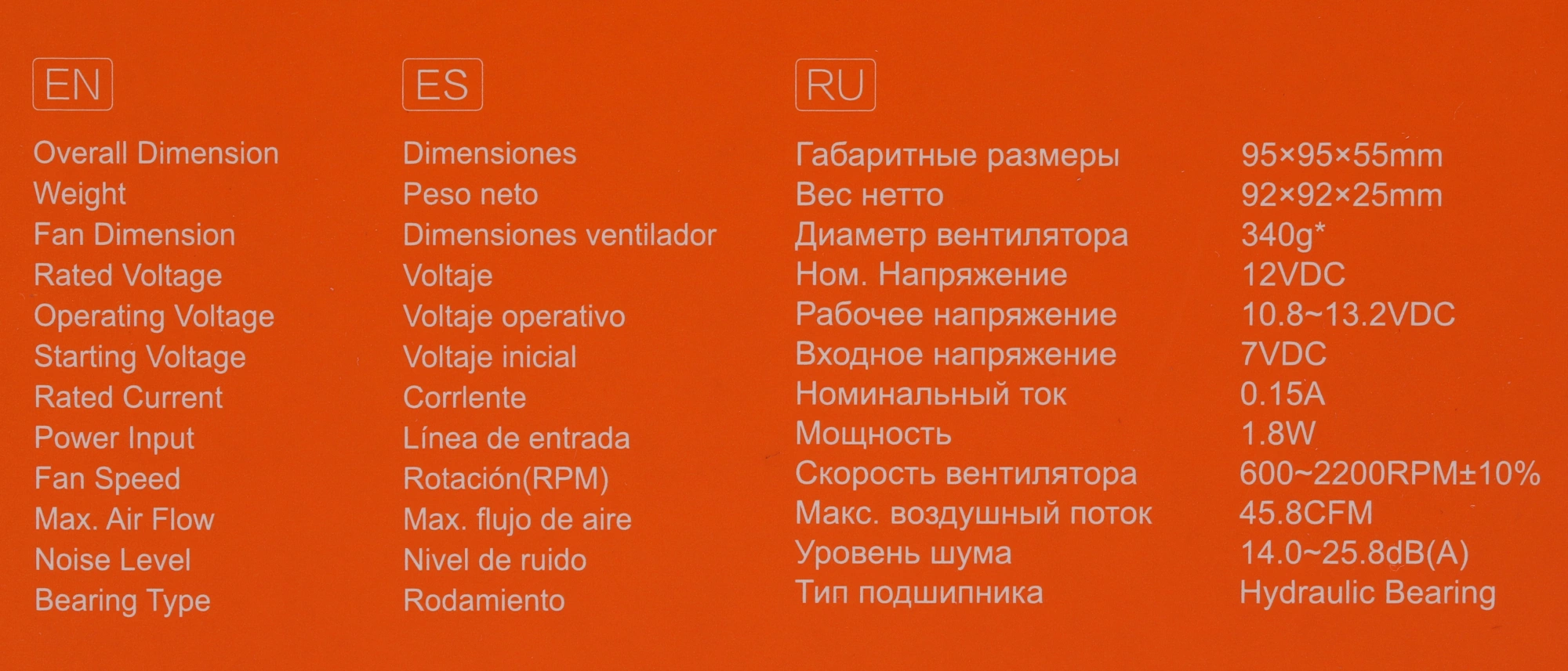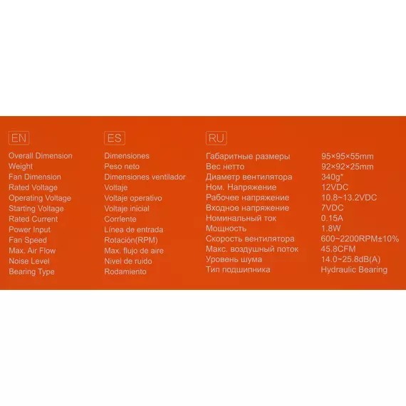 | Потребляемая мощность вентилятора | 1.8 Вт |