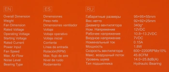 | Диаметр вентилятора | 95 мм |