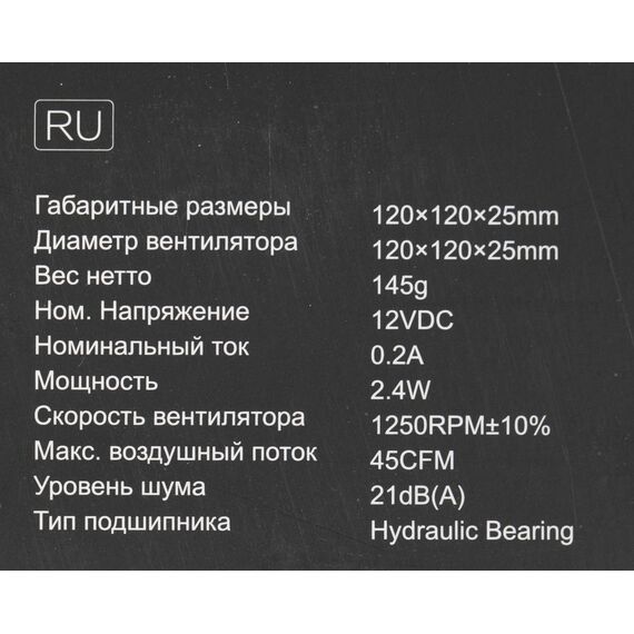 | Потребляемая мощность вентилятора | 2.4 Вт |
