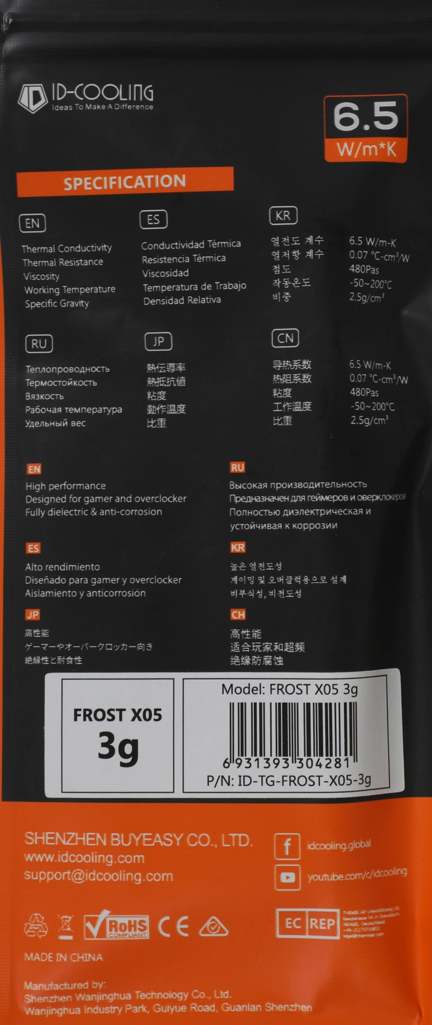 Термопаста ID-Cooling FROST X05 3G 6.5Вт/(м-К) шприц 3гр