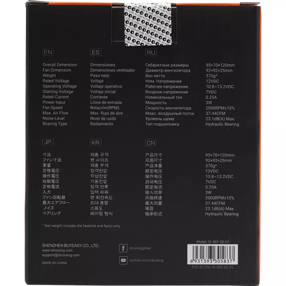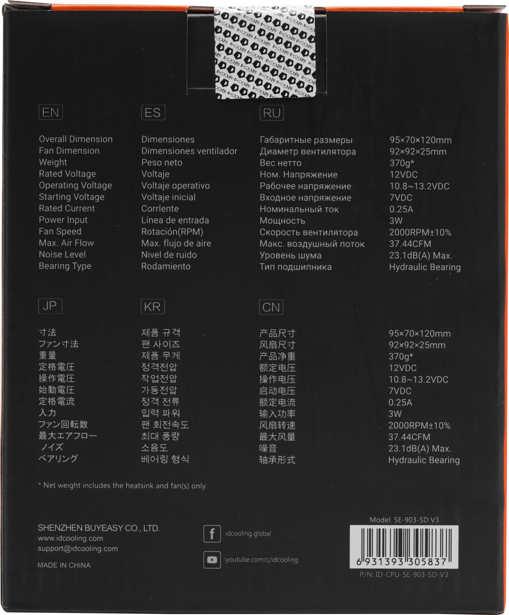 Устройство охлаждения (кулер) ID-Cooling SE-903-SD V3 Soc-AM5/AM4/1200/1700/1851 черный 3-pin 23dB Al Cu 130W 370gr Ret