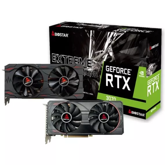 Видеокарта BioStar GeForce RTX 3070 8Gb PCI-E 4.0 256bit GDDR6 1500/14000 HDMIx1 DPx3 HDCP RTL (RTX3070-8GB LHR) [VN3706RM82]