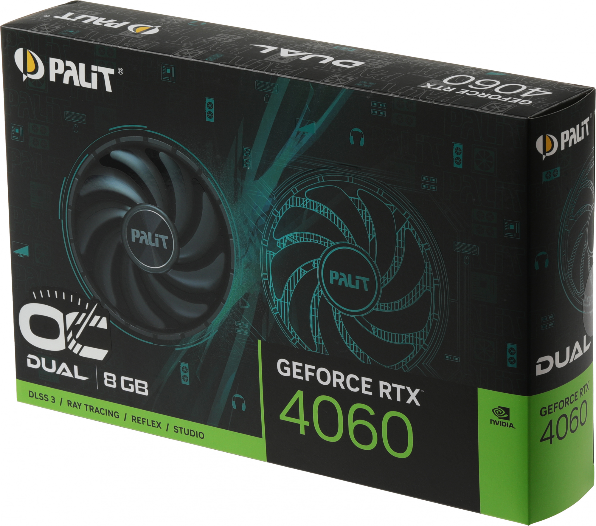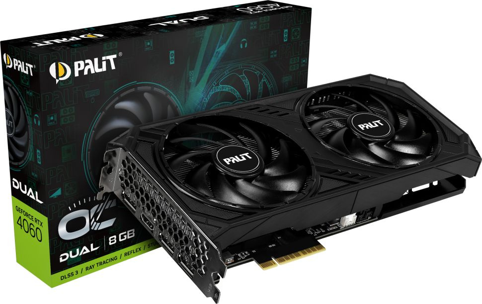 Видеокарта Palit GeForce RTX 4060 8Gb PCI-E 4.0 128bit GDDR6 1830/17000 HDMIx1 DPx3 HDCP RTL (RTX4060 DUAL OC NVIDIA) [NE64060T19P1-1070D]