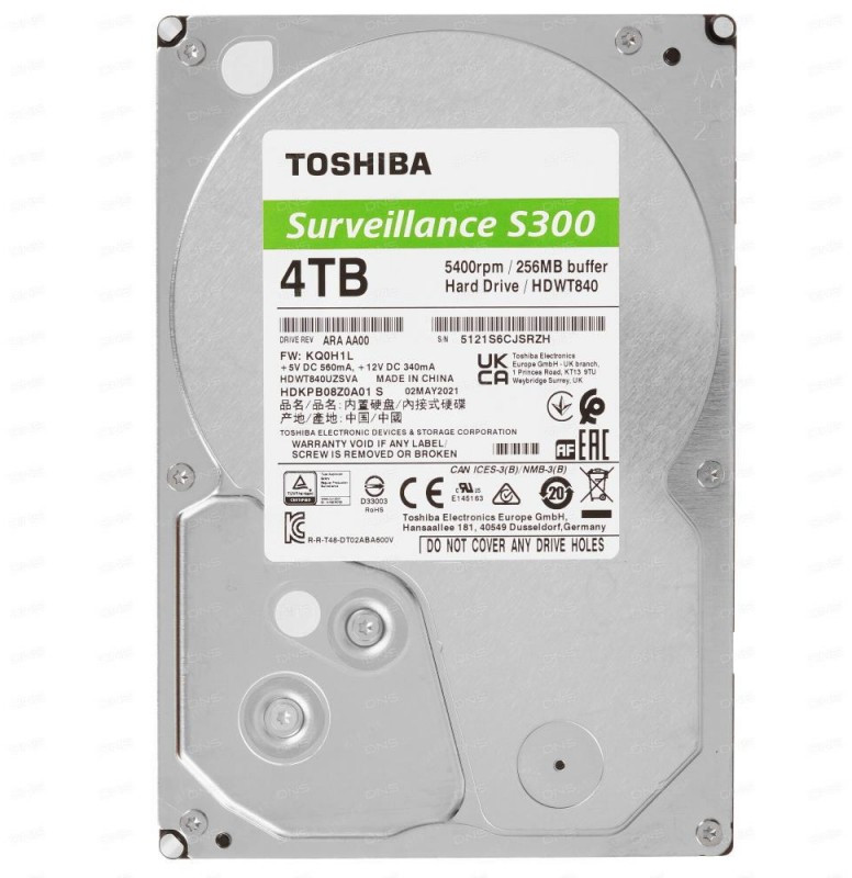 Жесткий диск Toshiba 4Tb Surveillance S300 (SMR) SATA 3 5400 256Mb [HDWT840UZSVA]