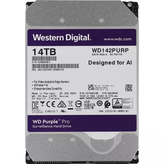 Описание Western Digital 14TB Surveillance Purple Pro [WD142PURP]