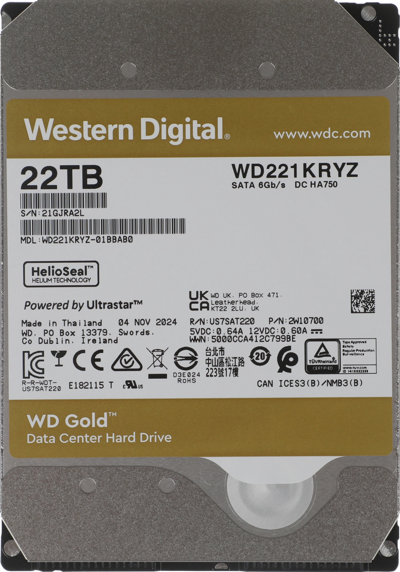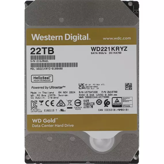 Описание Western Digital 22TB Server Gold 512E [WD221KRYZ]