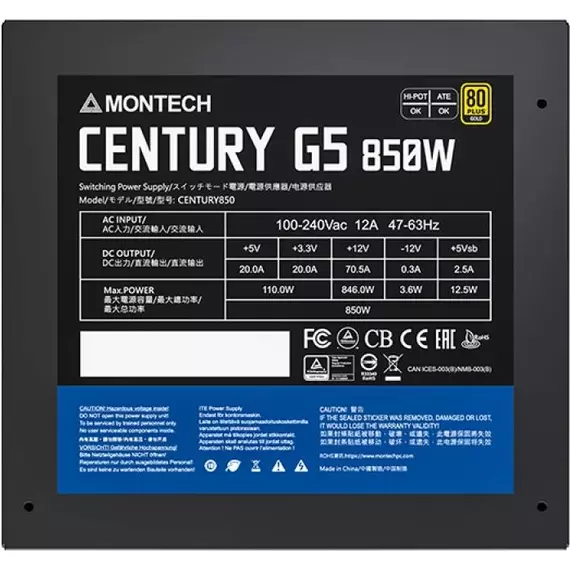 Описание Montech ATX 850W Century Gold G5 [CENTURY GOLD G5 850]