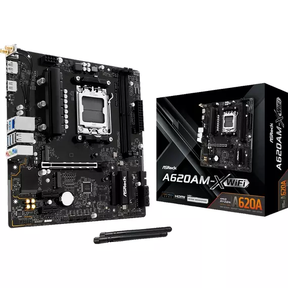 Материнская плата ASRock A620AM-X WIFI Socket AM5 AMD A620A 2xDDR5 mATX AC`97 8ch(7.1) 2.5Gg RAID+HDMI+DP
