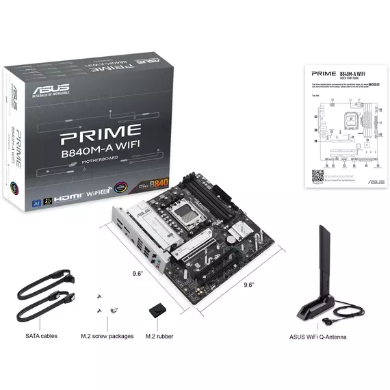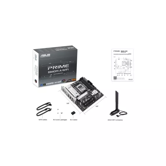 Материнская плата Asus PRIME B840M-A WIFI SocketAM5 AMD B840 4xDDR5 mATX AC97 8ch(7.1) 2.5Gg RAID+HDMI+DP