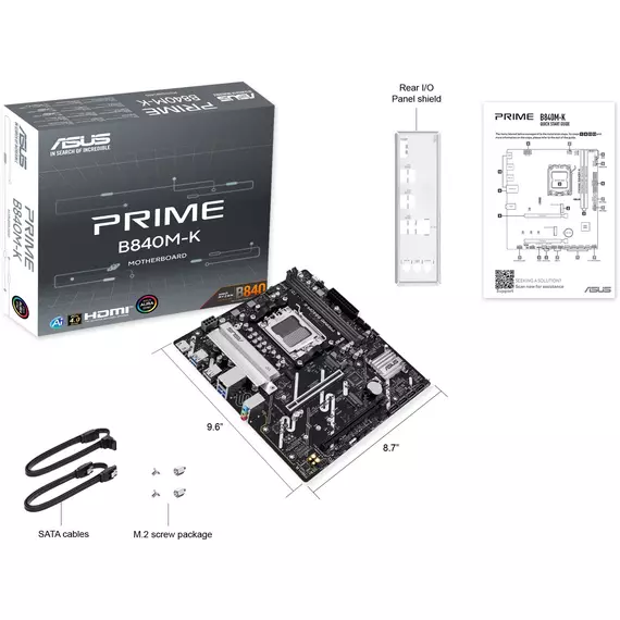 Материнская плата Asus PRIME B840M-K Socket AM5, AMD B840, 2xDDR5, mATX, AC`97 8ch(7.1), 2.5Gg, RAID, HDMI