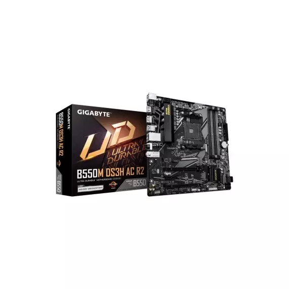 Материнская плата GigaByte B550M DS3H AC R2 Soc-AM4 AMD B550 4xDDR4 mATX AC`97 8ch(7.1) GbLAN RAID+HDMI+DP