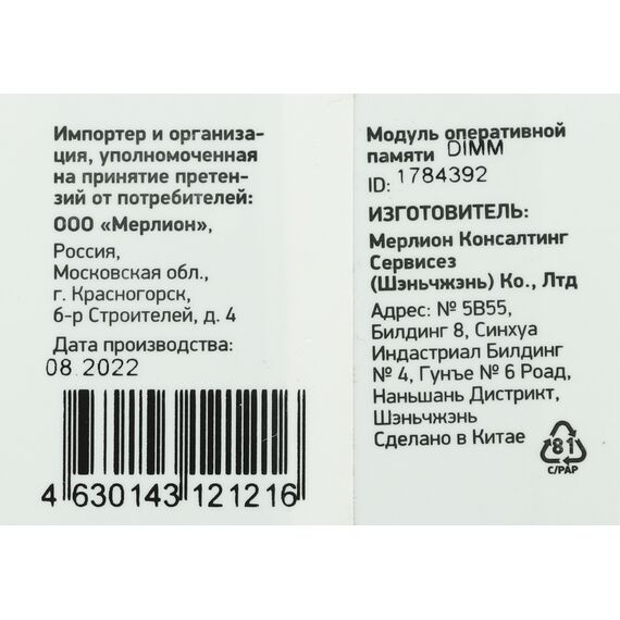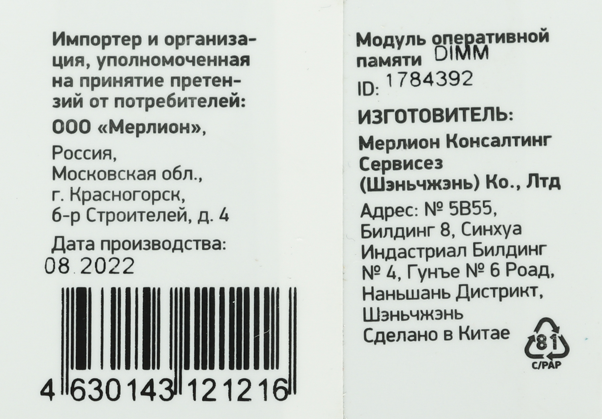 | PartNumber / Артикул Производителя | DGMAD43200016S |