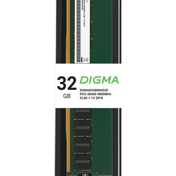 Оперативная память Digma 32Gb DDR5 4800MHz PC5-38400 CL40 DIMM 288-pin 1.1В dual rank RTL [DGMAD54800032D]