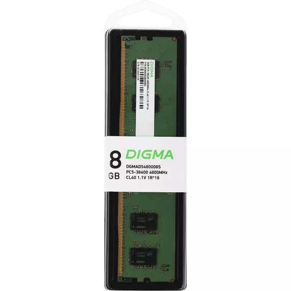 Оперативная память Digma 8Gb DDR5 4800MHz PC5-38400 CL40 DIMM 288-pin 1.1В single rank RTL [DGMAD5480008S]