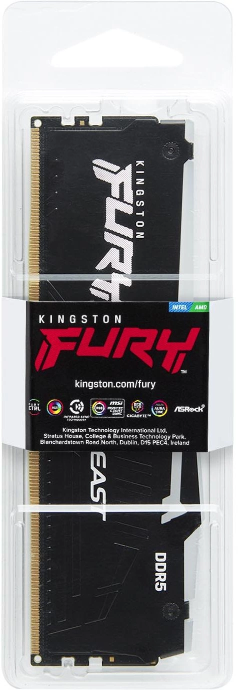 Память Kingston 16GB Fury Beast RGB DDR5 6400MHz Gaming PC5-51200 CL32 DIMM 288-pin 1.4В single rank с радиатором RTL [KF564C32BBEA-16]