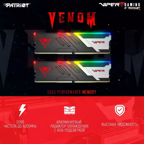 Память Patriot 2x16GB Viper Venom DDR5 6000MHz RGB Gaming PC5-48000 CL30 DIMM 288-pin 1.35В kit с радиатором RTL [PVVR532G600C30K]