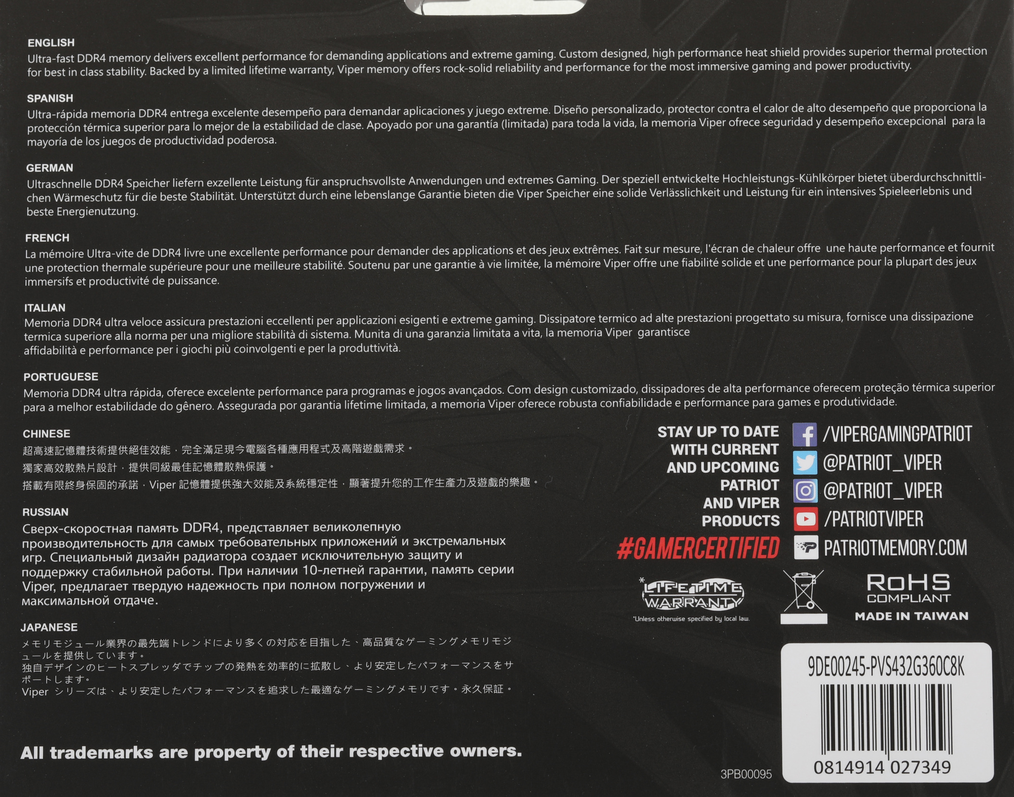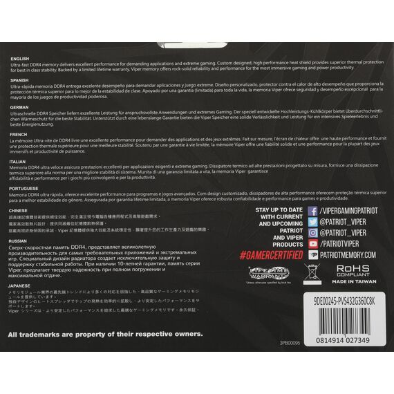 Описание Patriot Viper Steel Gaming 32Gb Kit 2x16Gb [PVS432G360C8K]