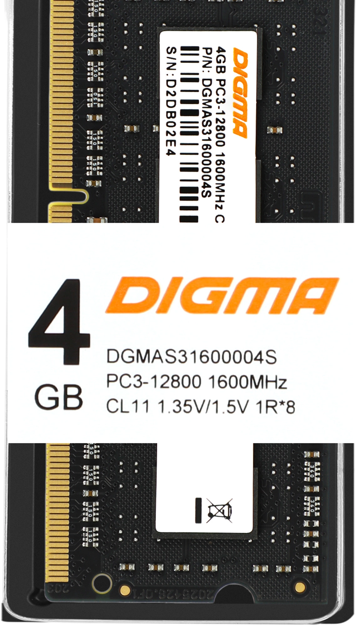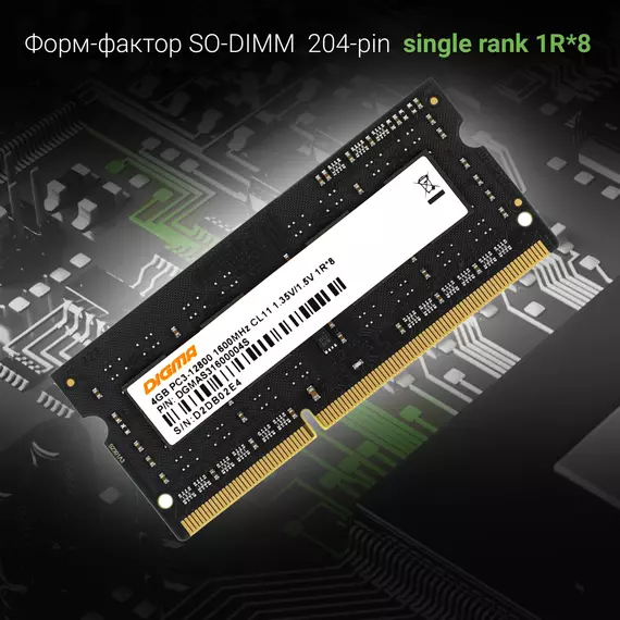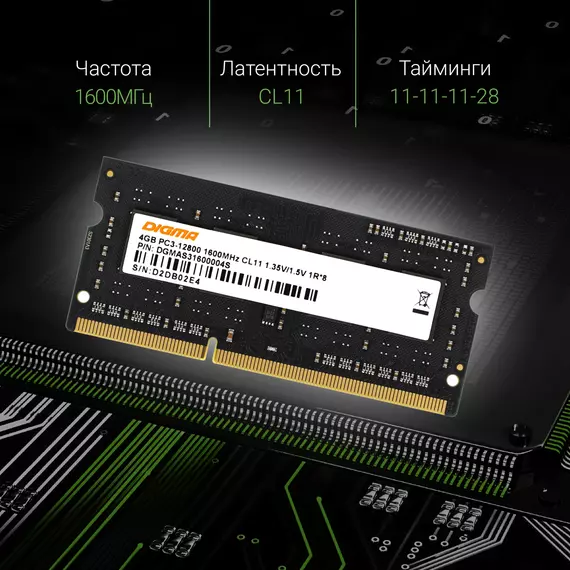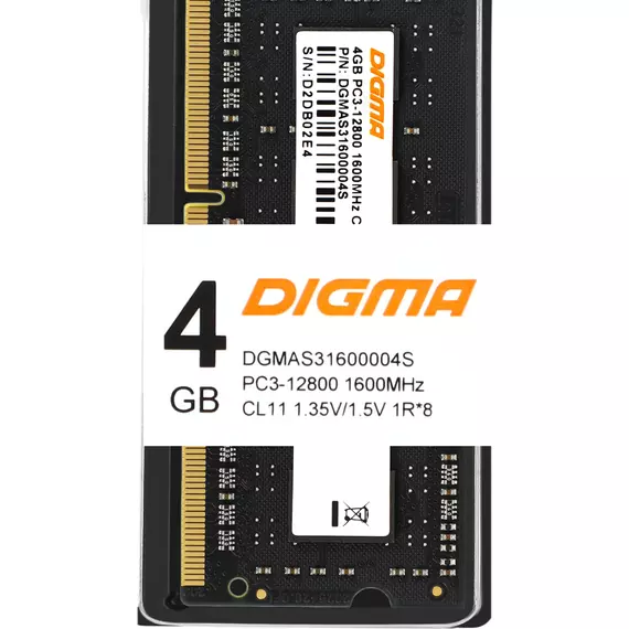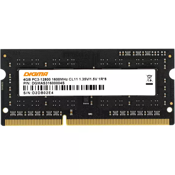 Память Digma 4Gb DDR3L 1600MHz PC3-12800 CL11 SO-DIMM 204-pin 1.35В single rank RTL [DGMAS31600004S]