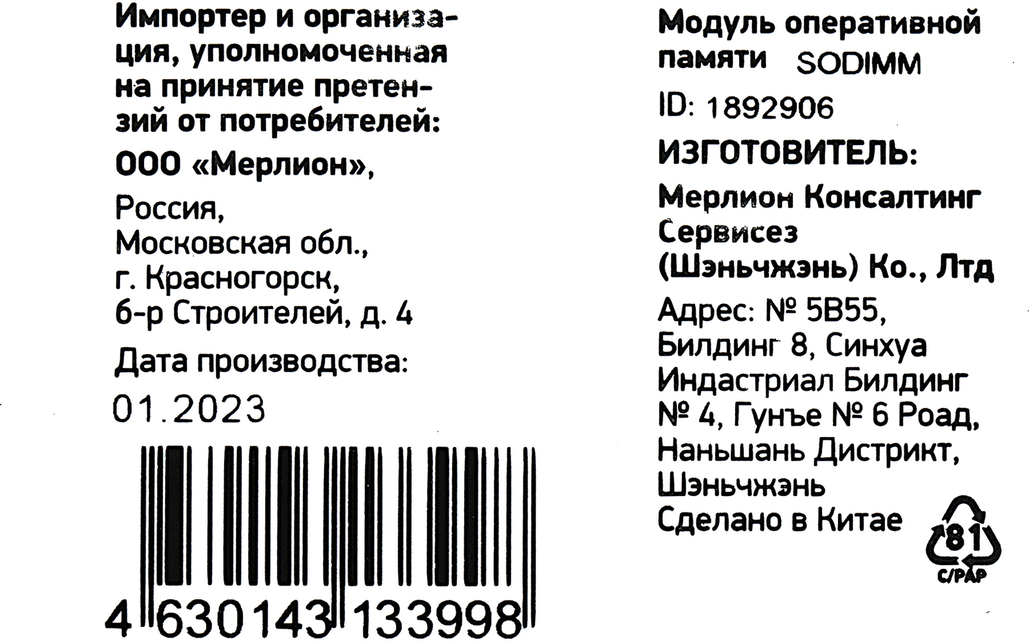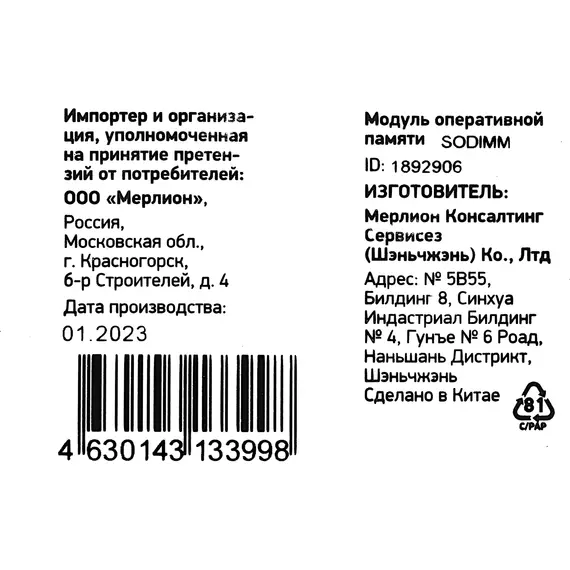 | Форм-фактор | SO-DIMM |
