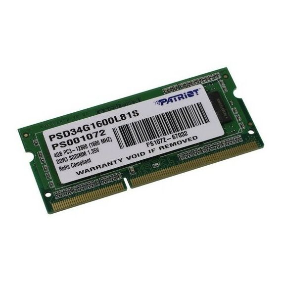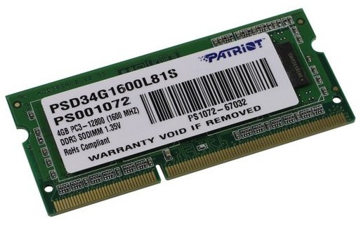 Модуль памяти Patriot 4Gb DDR3 SODIMM CL11 for NoteBook [PSD34G1600L81S]