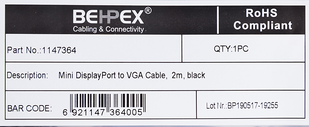 Наличие товара 1.1v miniDisplayPort (m) VGA (m) 2м