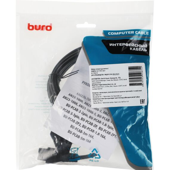 Описание BURO IEC C5 (3-pin) Евровилка 3м [BU-PCAB-3-3PIN]