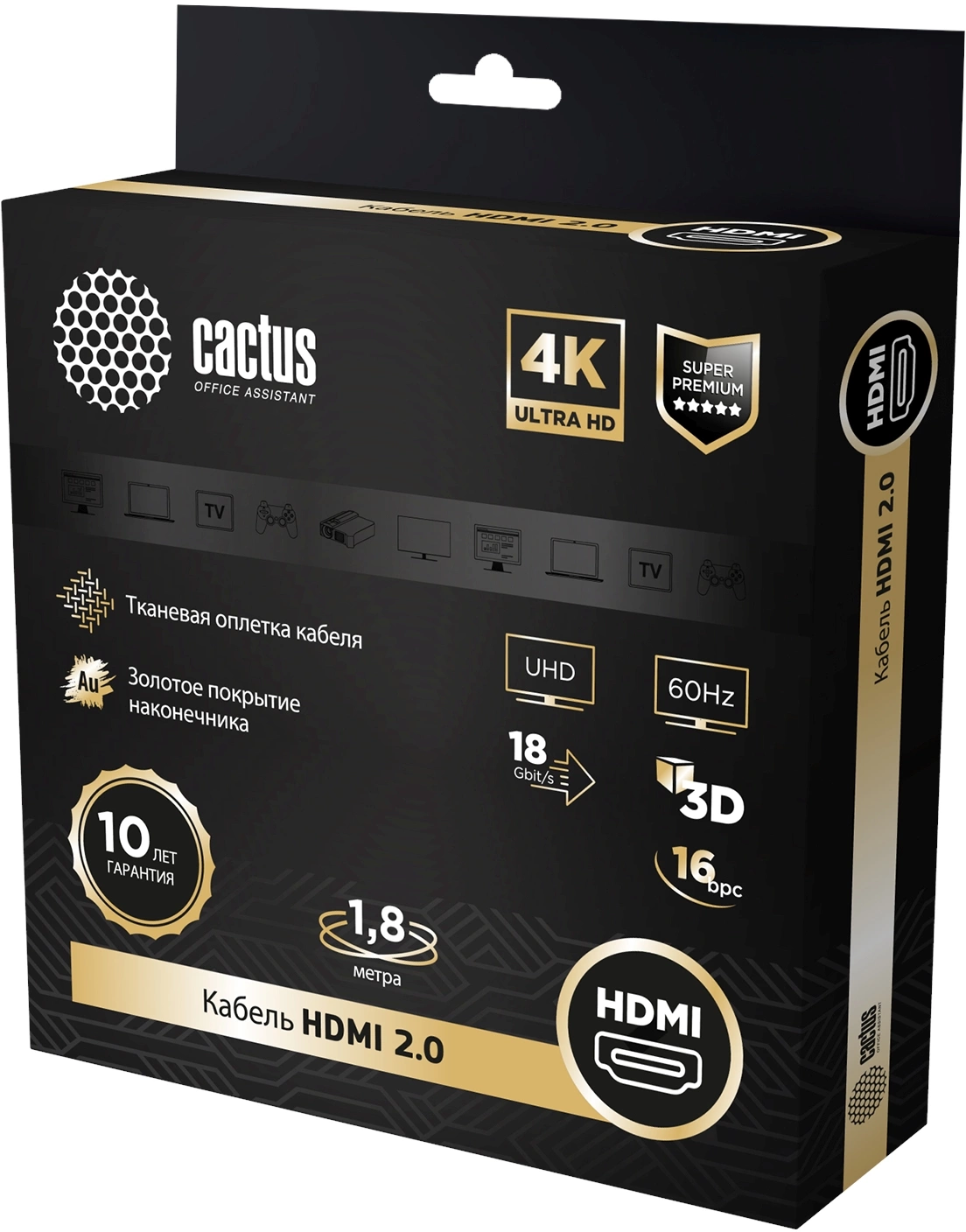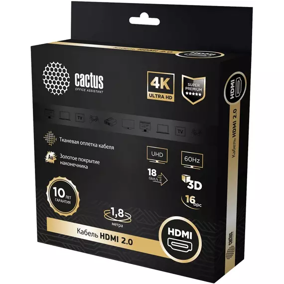 Описание Cactus HDMI (m)/HDMI (m) 1.8м. [CS-HDMI.2-1.8]