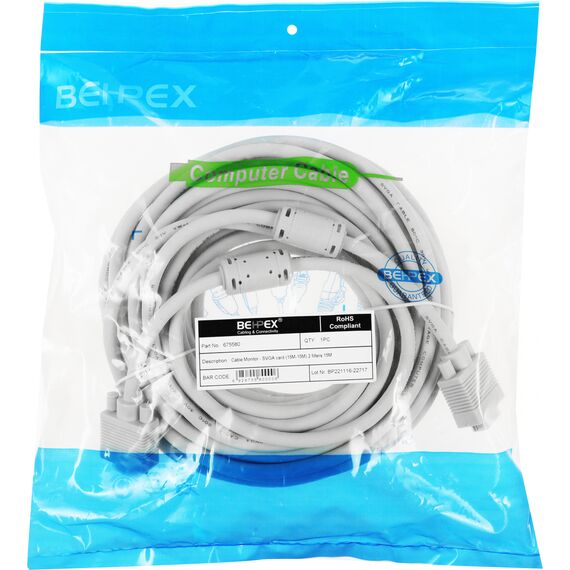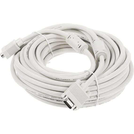 VGA кабель длиной 15 метров, дающий огромные возможности по размещению оборудования в больших помещениях. Встроенные ферритовые кольца блокируют помехи искажающие идущий по проводу сигнал, таким образом повышая его качество.