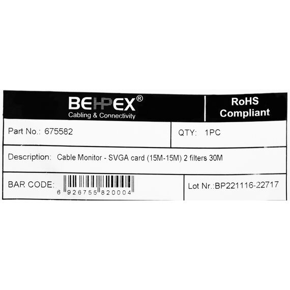 VGA кабель длиной 30 метров, дающий огромные возможности по размещению оборудования в больших помещениях. Встроенные ферритовые кольца блокируют помехи искажающие идущий по проводу сигнал, таким образом повышая его качество.
