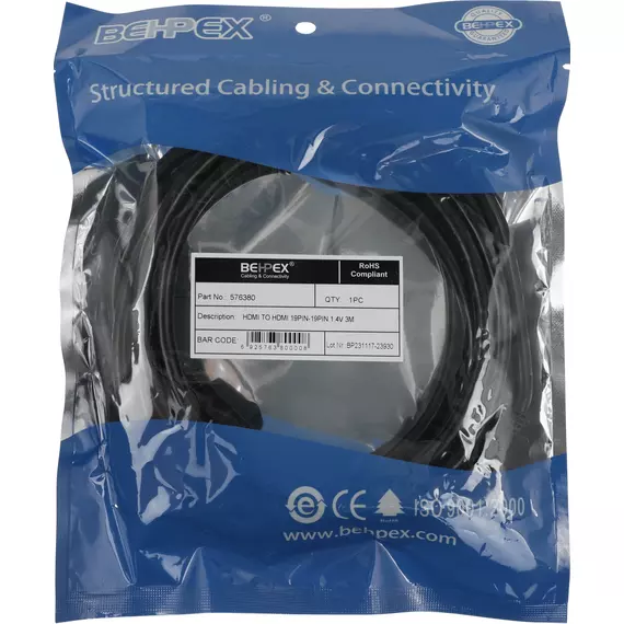 HDMI кабель для подключений компьютеров, ноутбуков Blu-Ray плееров и прочего оборудования к мониторам, телевизорам и проектора. Длина кабеля 3 метра.