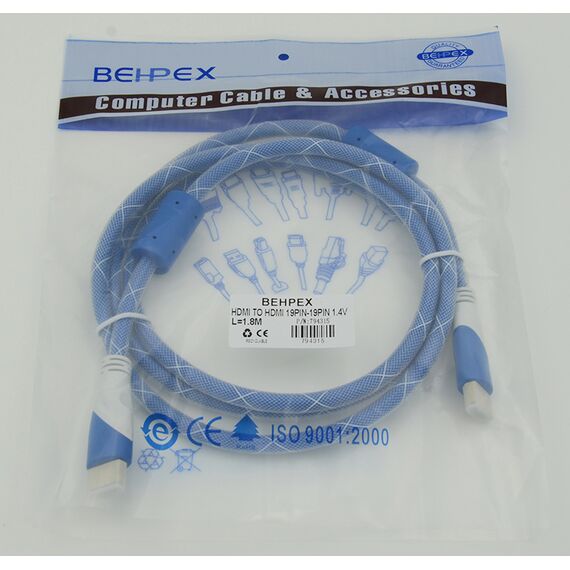 Кабель аудио-видео HDMI (m)/HDMI (m) 1.8м. феррит.кольца позолоч.конт. синий/белый