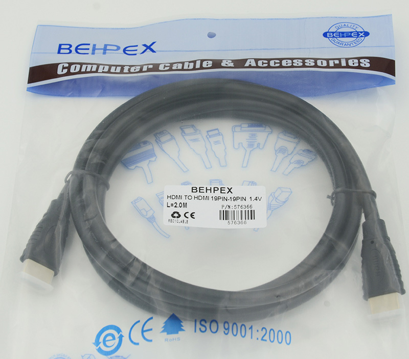 HDMI кабель для подключений компьютеров, ноутбуков Blu-Ray плееров и прочего оборудования к мониторам, телевизорам и проектора. Длина кабеля 2 метра.