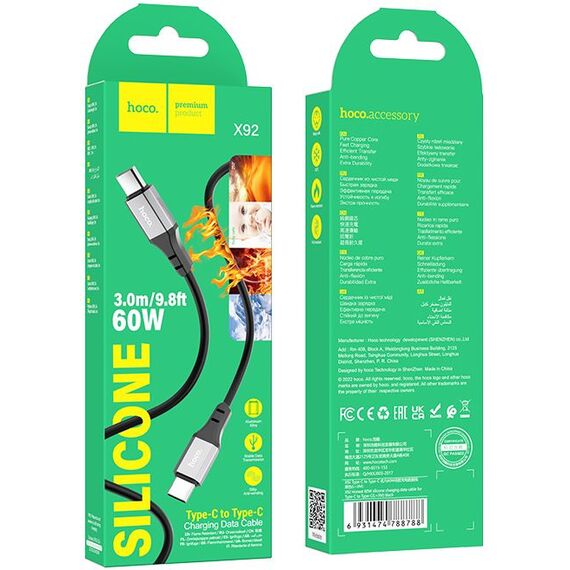 Кабель Hoco X92 Honest TYPE-C TO TYPE-C USB Type-C (m)-USB Type-C (m) 3м черный коробка