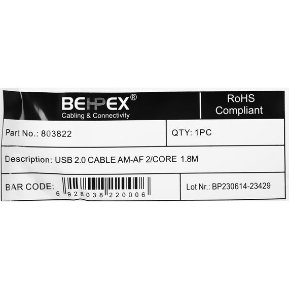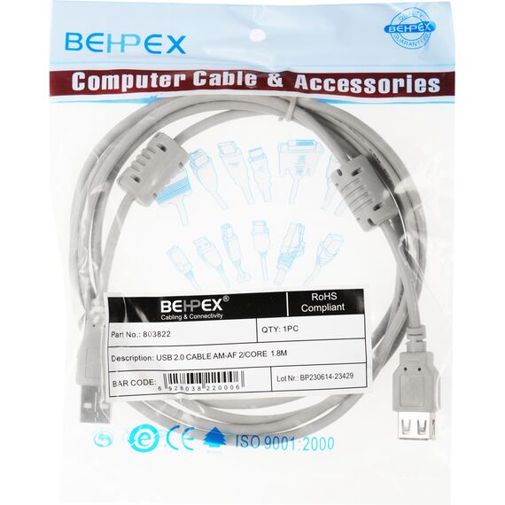 Кабель-удлинитель позволяющий повысить метраж проводов у клавиатуры, мыши, принтера, сканера или любого другого устройства использующего для подключения к персональному компьютеру порт USB 2.0. Длина 1,8 метра.