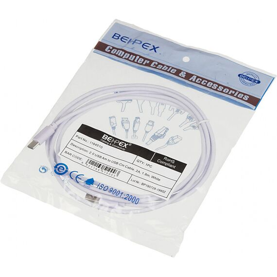Кабель USB (m)-USB Type-C (m) 1.8м белый