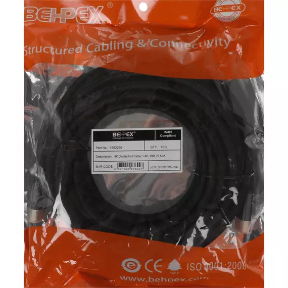 Кабель ver1.4 DisplayPort (m) DisplayPort (m) 10м черный