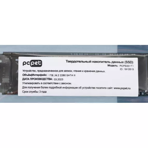 SSD-накопитель PC Pet 1Tb SATA-III M.2 2280 OEM [PCPS001T1]