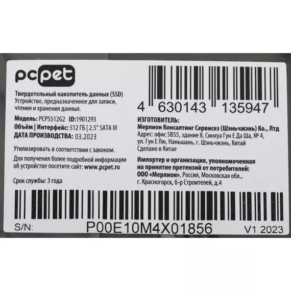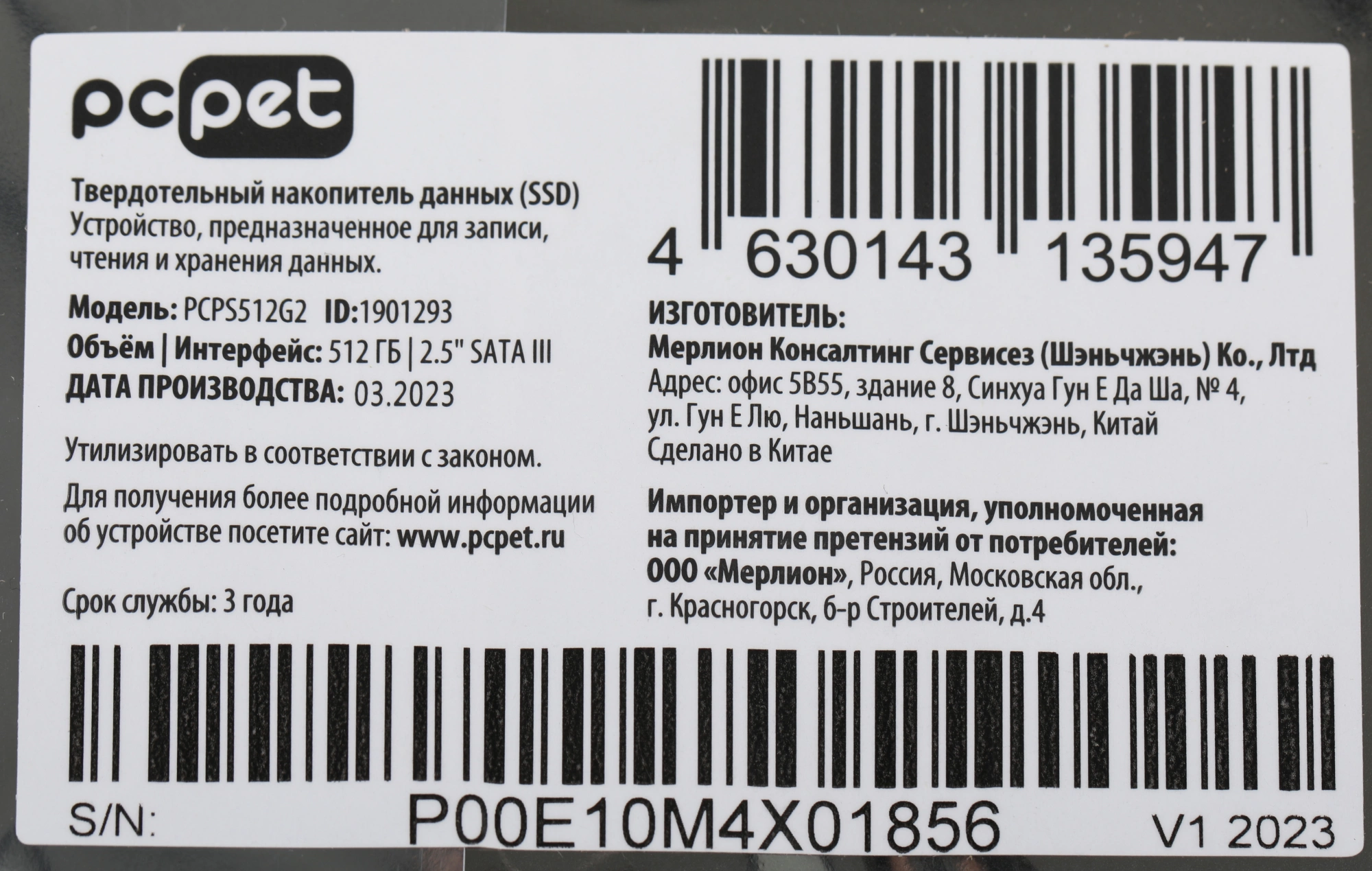 Наличие товара PC Pet 512Gb [PCPS512G2]