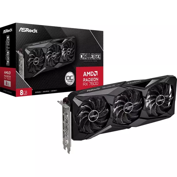 Видеокарта ASRock Radeon RX 7600 8Gb PCI-E 4.0 128bit GDDR6 2280/18000 HDMIx1 DPx3 HDCP RTL [RX7600 CLP 8GO]