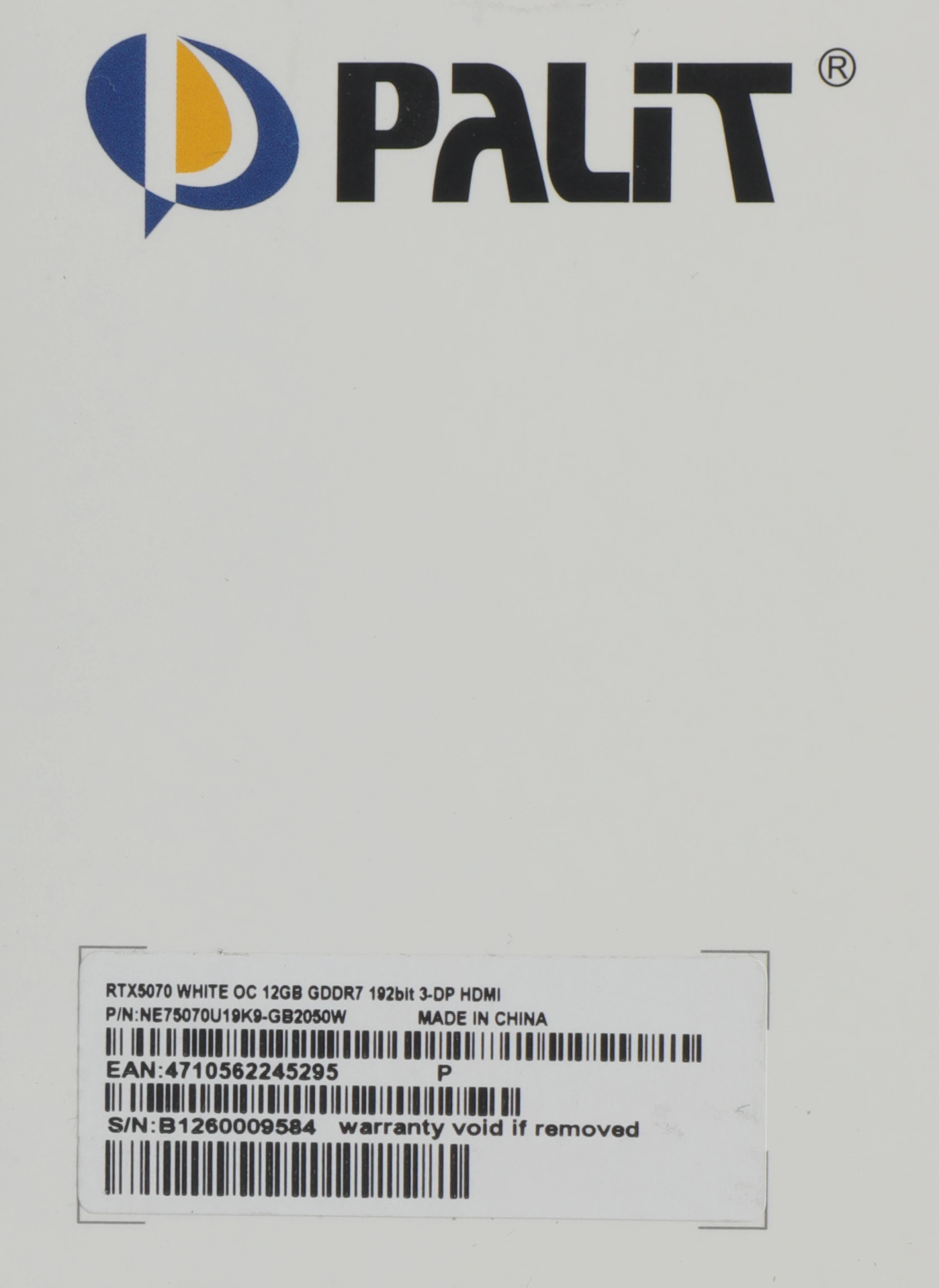 Видеокарта Palit GeForce RTX 5070 12Gb RTX5070 WHITE OC PCI-E 5.0 192bit GDDR7 2325/28000 HDMIx1 DPx3 HDCP RTL [NE75070U19K9-GB2050W]